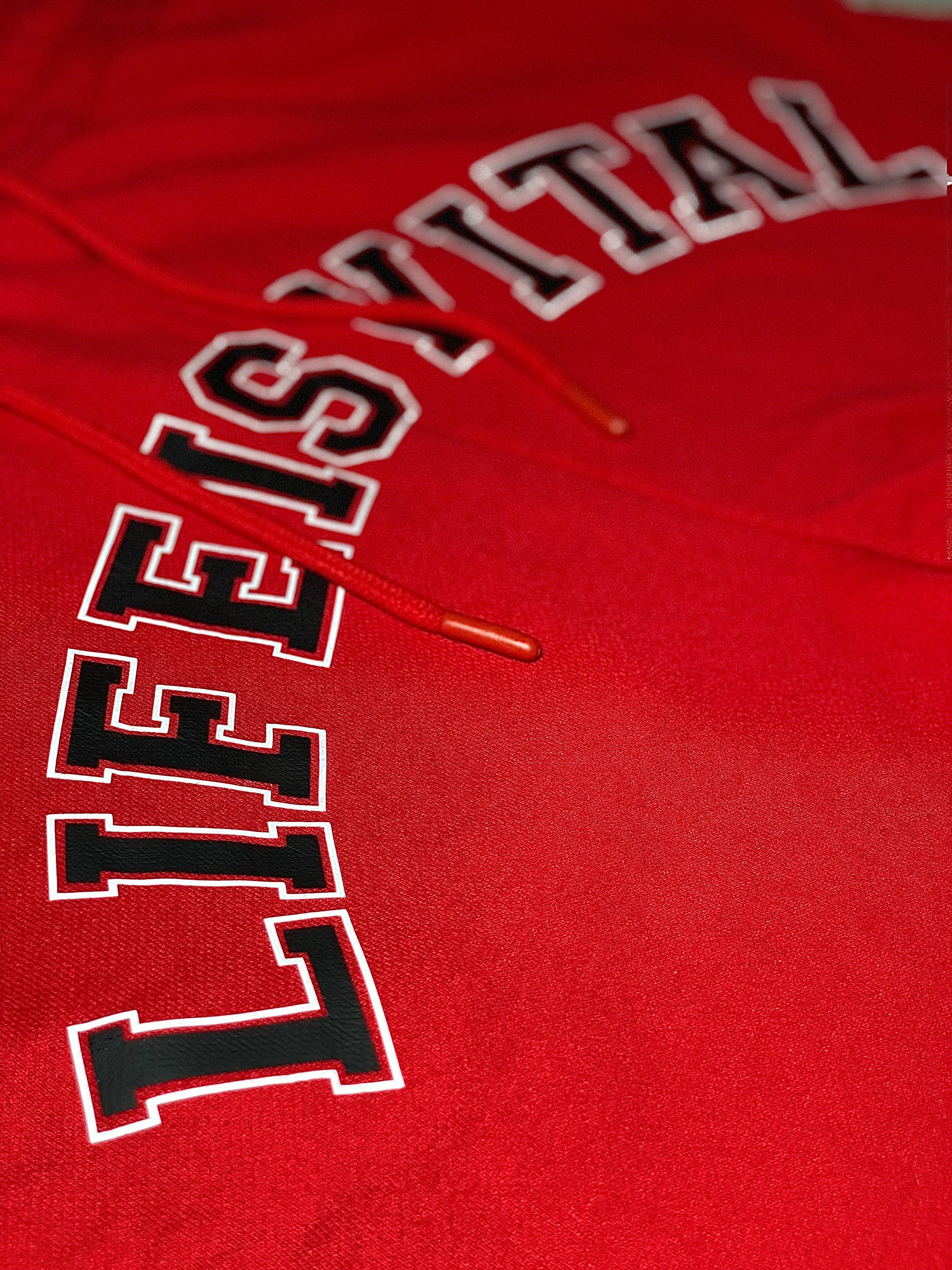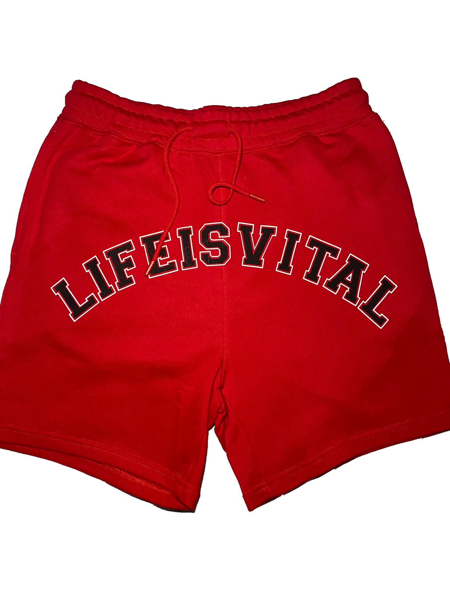 Shorts you’ll never be able to LIV without. Black and white varsity “LIFE IS VITAL” logo on our Red terry shorts. Featuring our signature rose logo on the back.